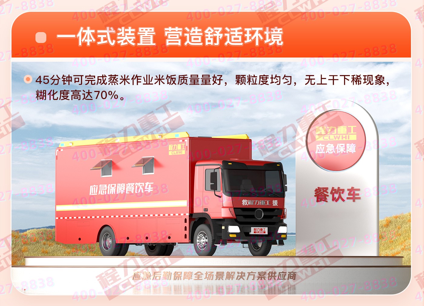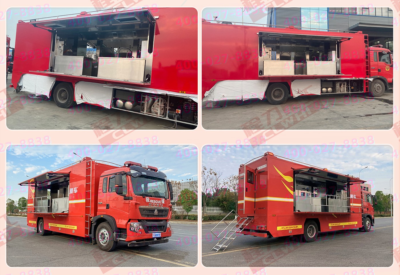 重汽汕德卡飲食保障車集爐、櫥、箱、案與一體,緊湊靈巧;實(shí)現(xiàn)了衛(wèi)生、健康、環(huán)保的要求; 功能性等集合為一體。車廂可兩邊展開作為打餐窗口;車廂內(nèi)飾為不銹鋼,配備不銹鋼爬梯、護(hù)欄、凈水箱,污水箱,雙眼灶,蒸飯車,冰箱等。不銹鋼整體壁柜,工作臺(tái),發(fā)電機(jī),空調(diào)等。該車機(jī)動(dòng)性能好,專業(yè)性強(qiáng),自動(dòng)化程度高,自然環(huán)境適應(yīng)性強(qiáng),并能在駐車和行車時(shí)進(jìn)行炊事作業(yè),可保障執(zhí)行野外任務(wù)部隊(duì)的飲食和飲水供應(yīng)。