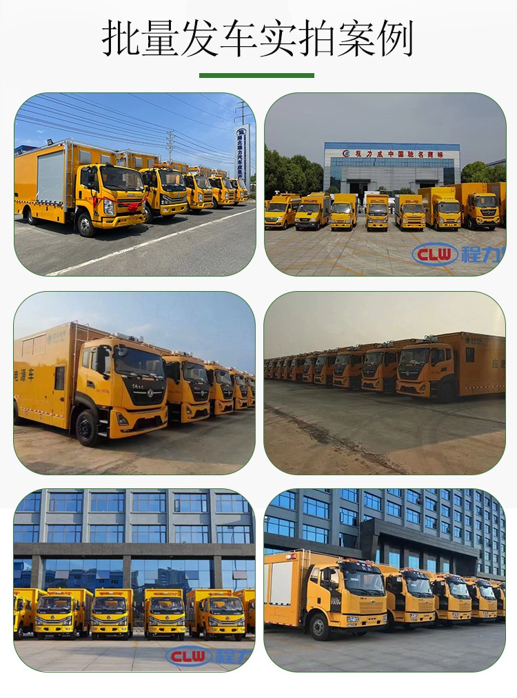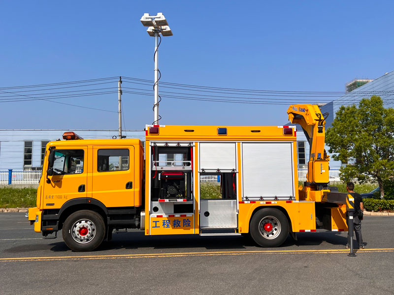 主要配置:發(fā)電機組、進口大流量排水泵、靜音廂體、車載空調(diào)、液壓支腿、配電控制系統(tǒng)、電纜絞盤、防爆照明燈、車載升降照明燈及搶險工具等。